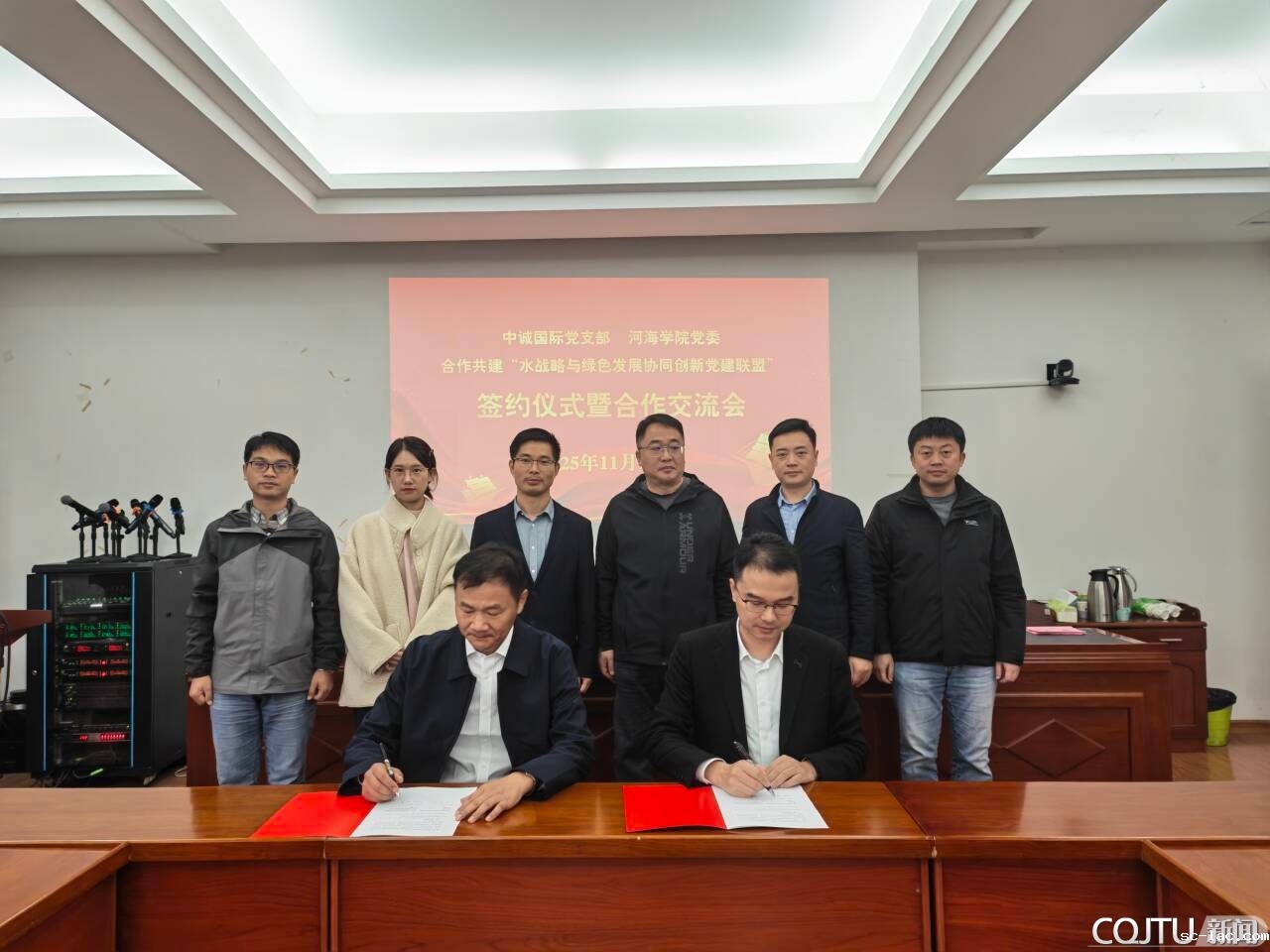 会上,河海学院党委书记叶四桥介绍了学院党建与事业发展情况,中诚国际副总经理赵军礼介绍了公司党建与业务发展成效。随后,双方举行了党建联盟签约仪式,叶四桥与赵军礼分别代表双方签署协议。