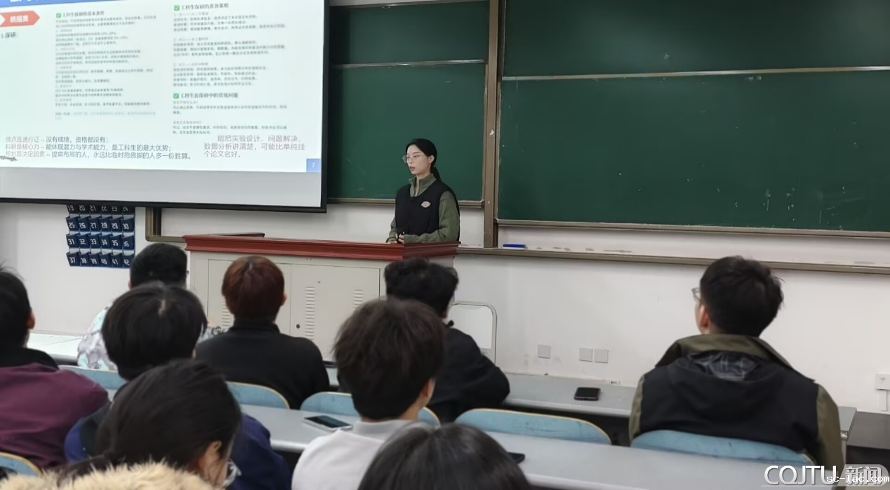 叶贵丹,现就职于绵阳市自然资源和规划局。会上,她从提前规划的原因、升学就业的取舍、实战干货等三个方面进行分享。首先,围绕“为什么要规划”,展示了近年来硕士研究生招生人数和毕业生规模、不断增加的国考报名人数,勉励同学们要让人生关键转折点的“被动应对”转向“主动掌握”,而不是简单的随波逐流。她还建议同学们善用网络课程资源,主动与师长沟通请教,积极拓展优质人脉资源,以多元学习路径夯实学业基础,提升综合素质。接下来,针对升学和就业的选择难题,叶贵丹校友分别给出了升学、就业的适合人群和发展方向。随后,她从升学篇实战经验方面,给出保研的注意事项,点明“绩点是通行证,科研是核心力,规划是决定因素”;分享了考研备考技巧,点明“绩点不一定是通行证,科研、项目、竞赛是考研的最大优势”;她还展示了专项硕士研究生招生通知文件。最后,从就业上,针对不同单位给出相应的核心能力要求;针对求职信息差、应聘技巧弱、匹配经历少的问题,给出相应的建议。