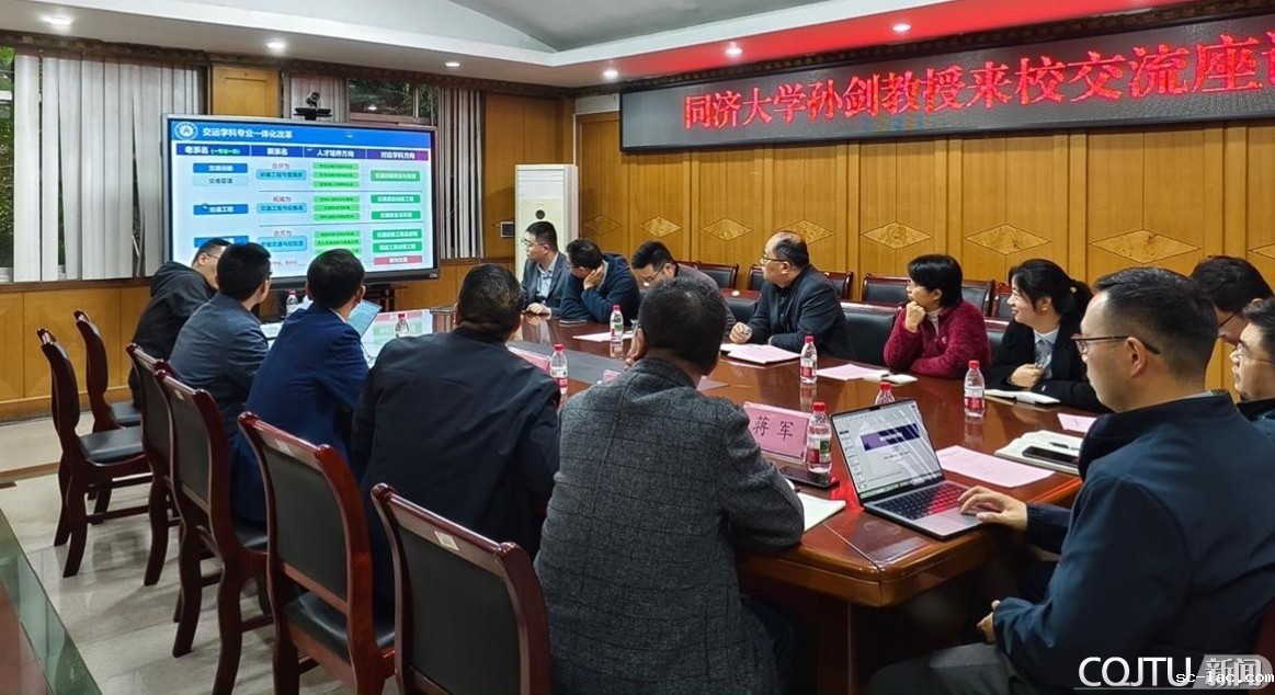 2025年11月16日上午,交通运输学院举办学科专业转型升级研讨会,特邀同济大学孙剑教授交流指导。会议由学院刘唐志院长主持,魏铜铃书记、吴伟副院长、蒋军副院长、何永福、王嵩、李为为、贾硕、饶畅、刘毅等教师参会。本次研讨会聚焦智能交通装备与控制系学科专业一体化改革、2026版人才培养方案修订、智能网联与自动驾驶研究方向凝练等议题,旨在推动交通运输工程学科在新时代背景下的转型升级与创新发展。