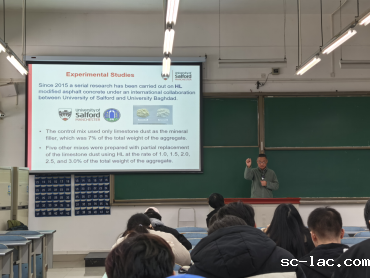 11月30日,Yu Wang教授在科学城校区作了题为“A Comprehensive Research on Hydrated Lime(Ca(OH)₂)Modified Asphalt Concrete”的学术报告,激发了师生对国际学术研究的浓厚兴趣。