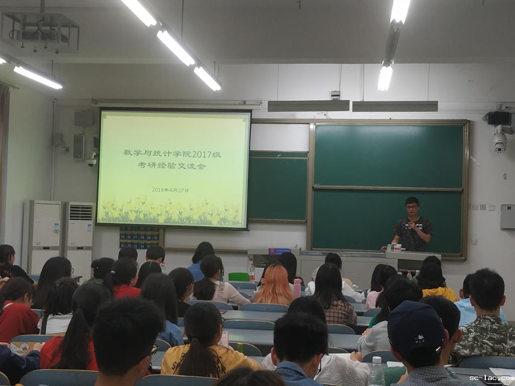 4月17日19:00,在双福校区A01223教室,2017级辅导员孟心亮组织开展了数学与统计学院2017级学生考研经验交流会。此次交流会旨在提高2017级学生的考研热情,帮助有考研意愿的学生了解近年来的考研形势,了解更多考研资讯,掌握相关考研复习技巧,从而使学生避免盲目,结合自身实际合理定位考研目标,并在后续积极主动地做好考研相关准备工作。交流会由孟老师主持,并邀请到六位2015级的学长学姐作交流发言,2017级有80余名同学参加了此次交流会。