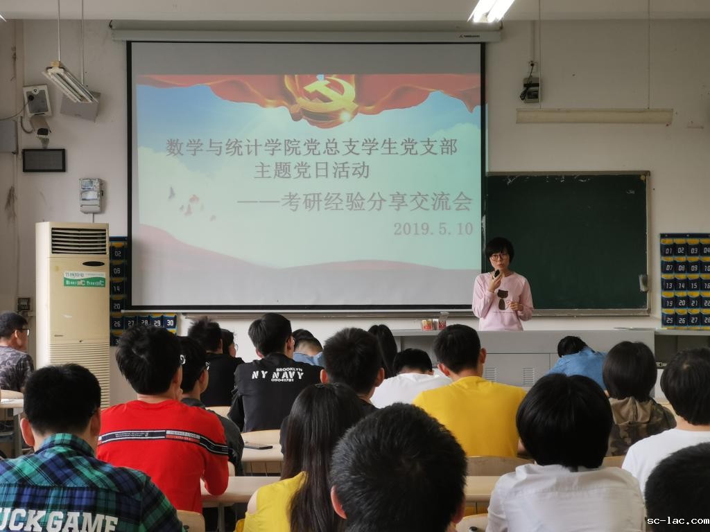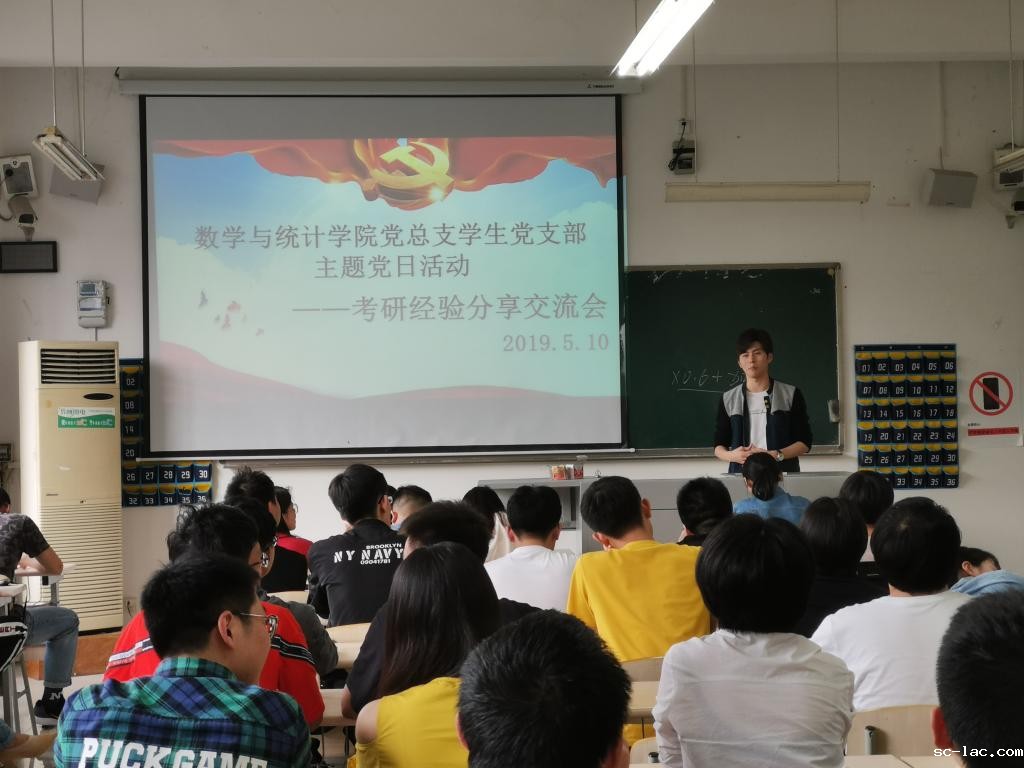 为更好地发挥学生党员在学风建设中的模范带头作用,进一步提高学生考研热情,帮助学生明确考研目标,掌握备考技巧,了解更多考研信息,数统学院党总支学生党支部于5月10日在南岸校区第二教学楼203教室展开了考研经验交流主题党日活动。交流会由辅导员周琴主持,学生党支部书记彭义雯和毕业生党员邵怀鹏、胡江洪、邓春艳、胡津容、乔钰涵出席,2016级有考研意向的同学参加。