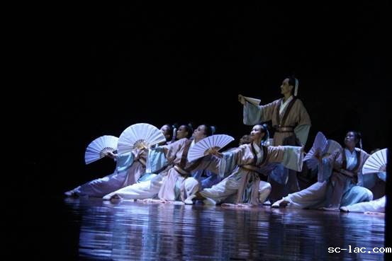 “恰同学少年,风华正茂;书生意气,挥斥方遒。”且看众书生月夜玩闹观月,洒脱酒醉于竹林之中;且看众书生持一纸扇,俯仰吟咏之乎者也;且看众书生相互作揖,仁义礼智信尽含其中。儒子严肃有之、书生痴萌有之、赤子直率亦有之。白色纸扇昭示着书生未来的无限可能,挥舞开闭于手掌之间展现出小小书生对未来的无限自信,13位舞者作为一位当时书生的喜怒哀乐跃然台上,带给观众身临其境的感觉。