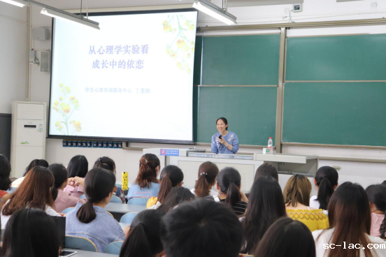 5月31日下午,由学工部学生心理咨询服务中心主办,外国语学院心理辅导中心承办的5.25心理健康节心灵之旅讲坛系列讲座(七)之“从心理学实验看成长中的依恋关系”在双福校区A01331教室举行,心理咨询中心专职心理咨询师丁雯刚老师主讲,外国语学院120余名同学聆听讲座。