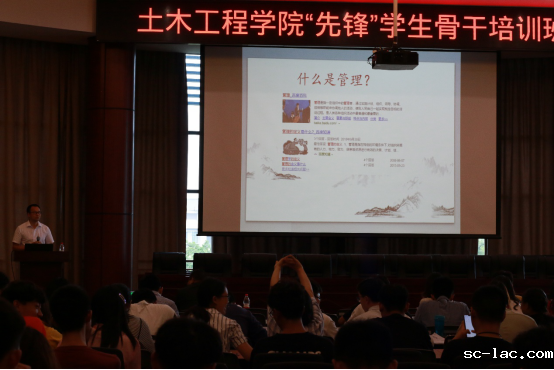 土木工程学院双福校区第四期“先锋”学生骨干培训班于6月12日12:30在双福校区致远楼开展。土木工程学院辅导员张荣杰为学生解读了如何进行日常管理。