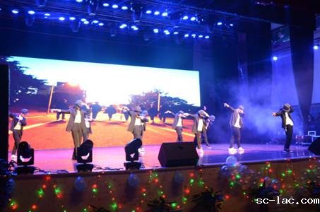随着“极度干燥”乐队的乐曲演奏晚会文艺表演拉开了帷幕;小品《安上基站,他不香吗》展现了信息技术给人们生活带来的巨大便利;爵士舞《绝妙的爱》融合了迈克·杰克逊的经典舞步,动感的节奏里表演者干净利落而又帅气的舞姿赢得了观众的阵阵尖叫。