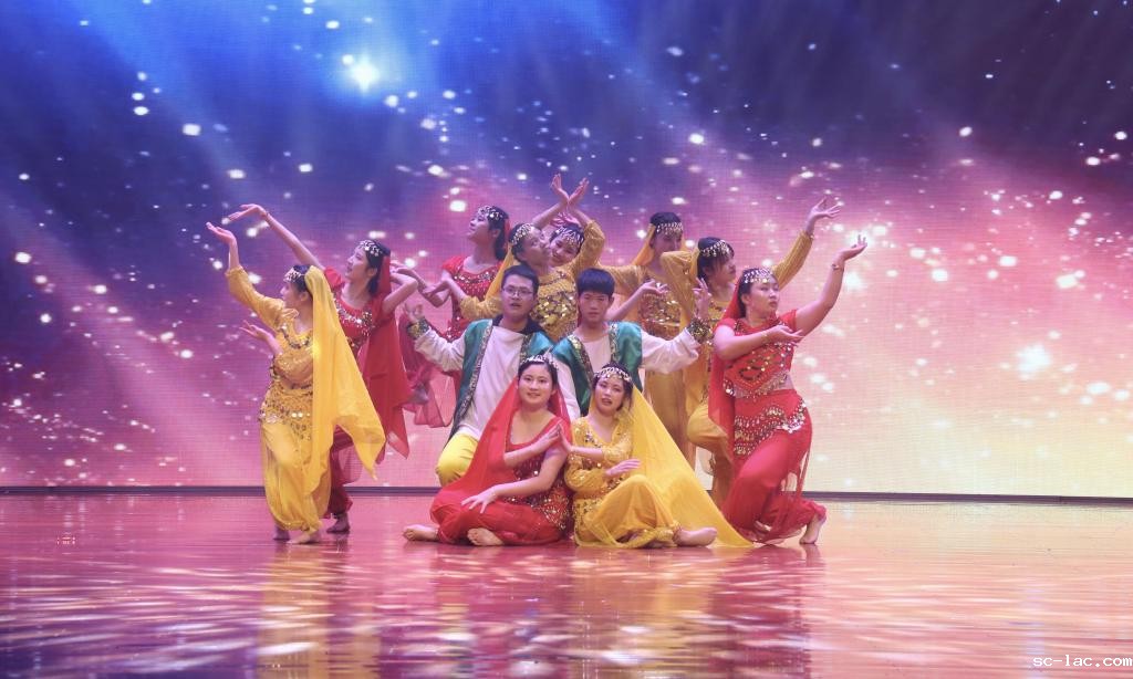 舞蹈表演《哎舞呦舞》伴随着动感的音乐,身着华丽服饰的同学们,再次活跃了晚会气氛。