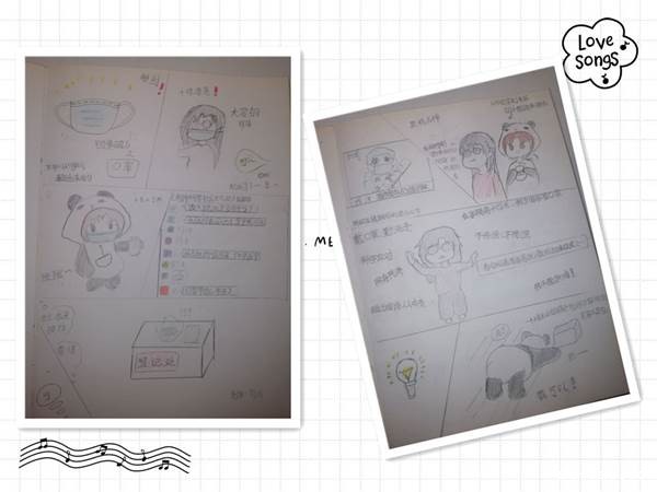 这2张漫画来自设控1702班的滕林。她说:“疫情防控期间,几乎家家户户自我隔离,这个春节,出门是风险,口罩成了消耗品,疫情就是命令,人人都应挺身而出,也都能有所作为。朋友说,她们姐妹俩好不容易从美容用品箱里找到了几个口罩,最终让给了社区志愿者们。而小漫画就是来自这个暖心小故事,你守护我,那我也要保护你。我用彩色铅笔将其记录,因为感恩与温暖本是馈赠,始于铭记,终以诠释,相约樱花烂漫时,魂绕梦牵者皆是归乡人。热干面加油,武汉加油!”