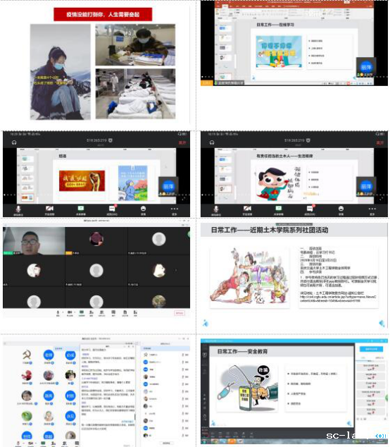 近日,土木工程学院全体辅导员分别通过QQ群、腾讯会议等网络平台完成了“爱国力行、共抗疫情”主题班会,做到全覆盖。