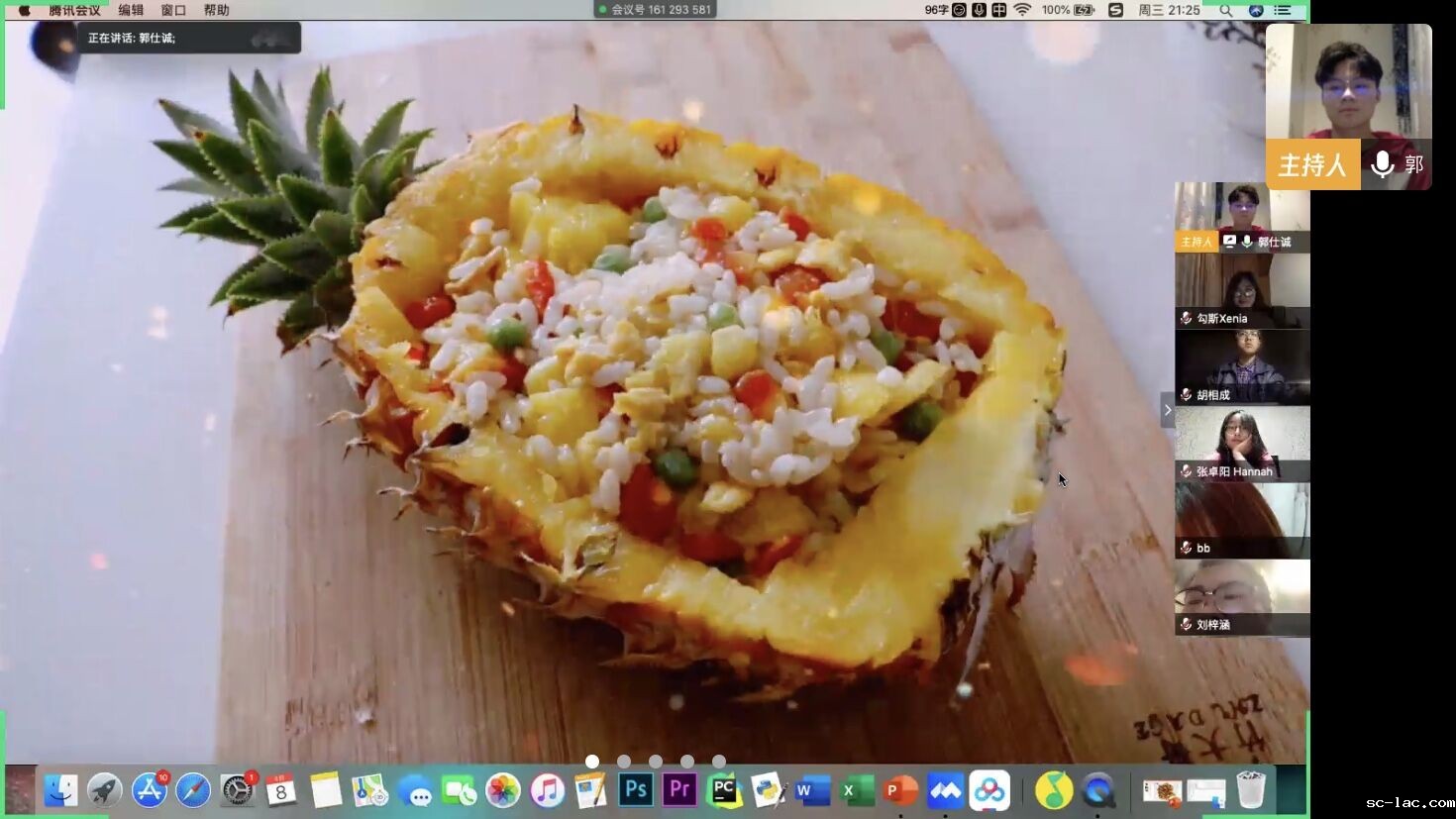 本次比赛邀请到辅导员何秋容老师与团委学生会干部代表作为评委,评选过程中,评审组认真观看每份视频作品,从色泽、制作过程等角度进行打分。参赛选手们也充分发挥自己“朋友圈”的力量,积极邀请同学们为自己的作品“点赞”。经过激烈的角逐,2018级工程翻译实验班蒋淞宇同学凭借“菠萝什锦饭”最终获得了本次比赛的最佳人气奖!