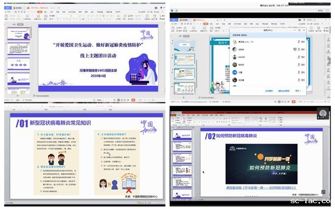 创新学习形式,上好“云端”主题团课。此次爱国卫生月系列活动,学院在校本科学生团支部78个全部开展主题团课,青年团员学习全覆盖,线上防疫知识答题参与度较好。通过团支部主题团课、线上防疫知识答题,同学们不仅了解到此次新冠肺炎的相关知识,更是着重学习掌握了居家、出行、在校的日常防护技能。