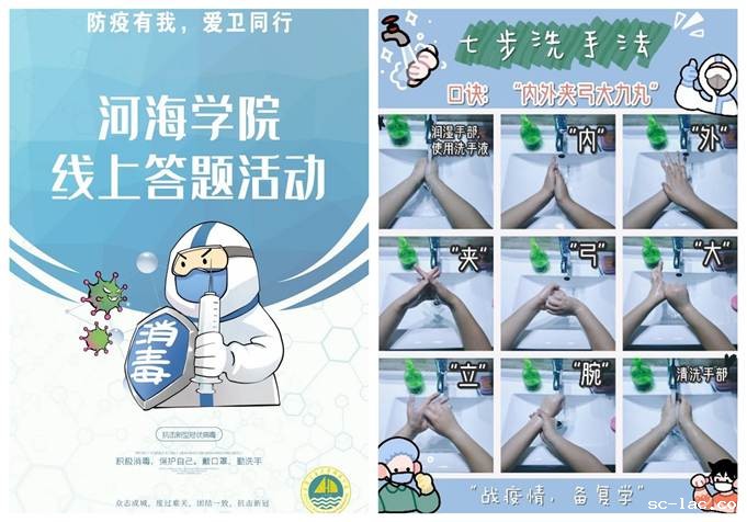 学院线上防疫知识答题海报与“七步洗手法”自制实践海报