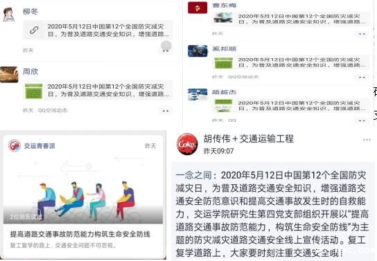 结合当前疫情防控实际情况,此次活动以线上形式为主。研究生四支部同学积极参与,结合所学专业知识,共同打造趣味十足、简单易懂的宣传文案,通过QQ空间和微信朋友圈转发,普及交通安全常识,变身交通安全宣传大使。
