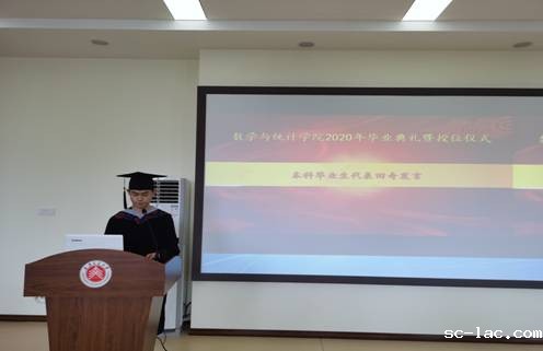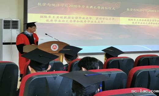 6月16日下午,数学与统计学院在南岸校区教师发展中心会议室举行了庄重的毕业典礼暨授位仪式并且通过腾讯会议全程同步直播,送别2020届毕业生。参加仪式的人员有:学院领导、学位评定委员会委员、各系部主任、教师代表、辅导员及2020届研究生和毕业生本科代表。仪式由党总支副书记林兴冬主持。