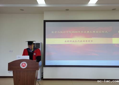 最后,在学院领导、教师代表及毕业班辅导员的见证下,在学院党总支副书记林兴冬的带领下,进行了“数统人宣言”之毕业宣誓仪式,表示一定会通过自己的努力做一个对国家、社会有用的人。