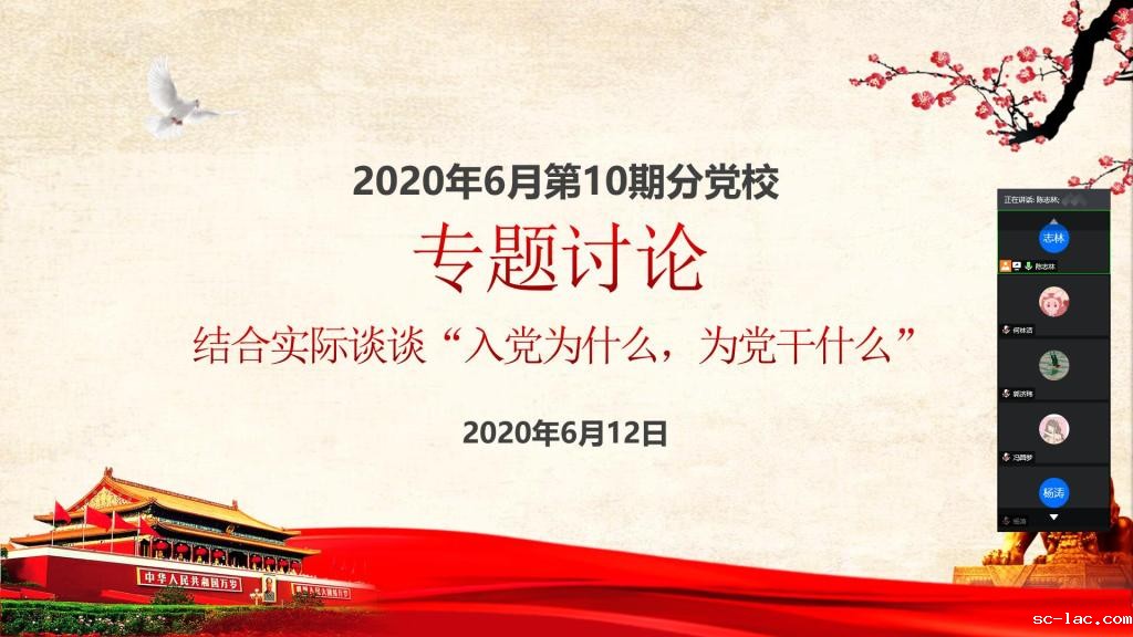 同时,全体学员还通过腾讯会议+QQ群进行了“入党为什么,为党干什么?”主题讨论。同学们结合自身实际和本次培训的所思所想所感所获,深刻剖析了自身的入党动机,表达了为共产主义事业奋斗终身的决心。大家表示将进一步端正入党动机,不断加强党性锻炼,以实际行动和出色成绩争取早日成为一名光荣的中国共产党党员。