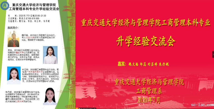 7月1日晚,经管学院工商管理专业邀请就读于北京大学、重庆大学等高校的四位优秀校友与在校学生进行了学习和考研经验交流,共有近100名学生通过网络参加了本次交流活动。工商管理系方涌、潘林伟、邢青松等教师参加本次交流会,活动由工商管理系主任张瑞老师主持。