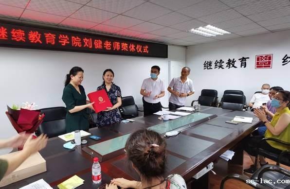 7月17日下午,继续教育学院2020年退休职工荣休仪式在第三办公楼4楼会议室举行。仪式由车庆辉副院长主持,学院领导班子成员、全院在职教职工参加了仪式。