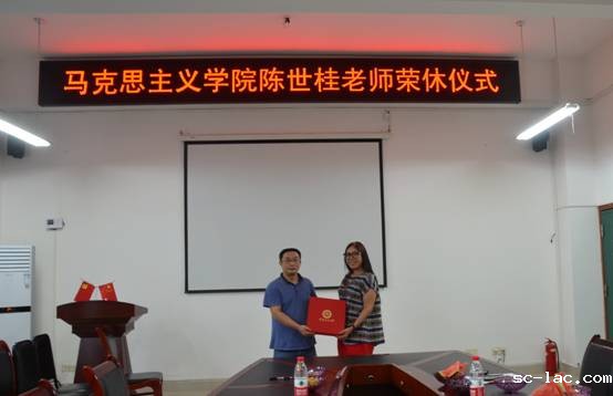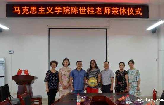 2020年9月11日下午,马克思主义学院为退休教职工陈世桂老师举行了荣休仪式。学院党政领导、工会主席、陈世桂老师所在教研室主任、支部书记、各办公室主任及教职工代表参加了荣休仪式。荣休仪式由学院党总支书记吴成国主持。