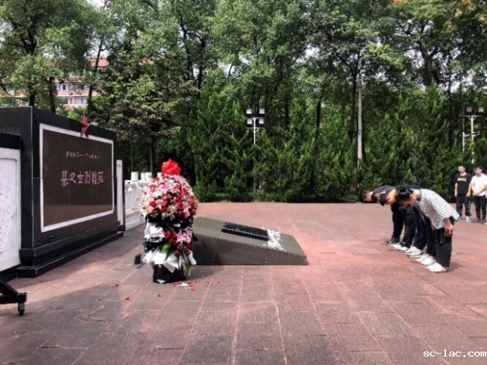 烈士雕像以最精炼的艺术手法向人们展示一部血与火、生与死之间搏击的壮烈史诗。党员们在参观的过程中被一座座雕塑,一篇篇碑文深深吸引和感染。群雕后的烈士公墓则安息着300多名革命先烈,党员们在烈士公墓前深深鞠躬,以缅怀革命先烈,敬仰先人们为革命事业做出的无私奉献。