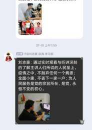 学生刘志豪同学讲到:自己深刻地了解主讲人所说的人民至上。疫情之中,不抛弃任何一个病患;全面小康,不丢下一家一户;为人民服务是党的宗旨所在,是党永恒不变的初心。