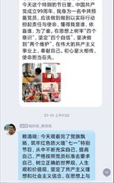 学生刘如仙同学讲到:今天观看完了党旗飘扬,筑牢红色防火墙“七一”特别节目,对四所大学的宣讲进行了学习,在今天这个特别的节日里,中国共产党成立99周年,应该做到以实际行动担起责任与使命,懂得我是谁,依靠谁,为了谁。在伟大的共产主义事业上,奉献自己。初心星火相传,使命担当在先。