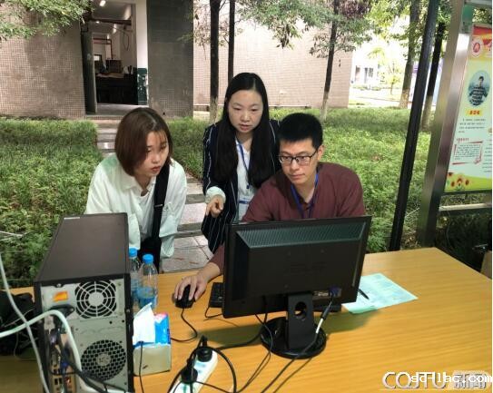 9月15日-17日双福校区新生报到现场,财务处全体工作人员以热情的服务欢迎来自五湖四海的新同学,顺利完成了新生报到缴费工作。在简易的遮雨棚下,财务处员工热情答疑解惑,指导同学们顺利完成报到注册的缴费流程,除此之外还兼任路线指引员角色,接受新生们问路、购物等其他咨询。