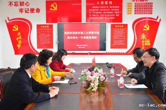 2020年11月25日下午,西安理工大学图书馆馆长杨杰一行2人到我校图书馆调研交流,图书馆、档案馆党总支书记、副馆长陈国容,馆长韩西,副馆长俞兴东等热情接待了到访同仁,双方就图书馆相关工作进行了深入交流。