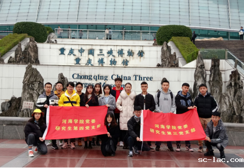 为弘扬新时代爱国奋斗精神,深入开展党史、新中国史、改革开放史、社会主义发展史学习教育活动,2020年11月27日下午,河海学院研究生第三、四党支部联合开展户外组织生活会,前往重庆市三峡博物馆参观学习,活动分别由第三党支部书记杨智中和第四党支部书记华璐领队参观。
