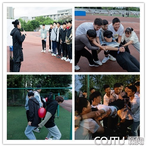 在“信任背摔”中,一句“我可以相信你们吗?请相信我们”,充分信任队友,背对倒下,队友将自己环绕一周,充分考验团队成员的心理素质和对队友的信任程度。在“雷阵取水”中,团队协作,发挥创新,从“雷阵”中取出水,展现了团队成员各司其职、团结协作精神。在“搭桥过河”中,两队比拼,4个人拆桥搭桥,以最快的速度到达终点,考验团队协作,冷静思考的能力。在“心心相印”中,两队比拼,需要两人背夹气球,穿过阻碍,与下一组同学完成接力,用时最短的组获得胜利。最后“单孔电网”的难度明显比前四项有所增加,需要将两根绳子牵开模仿电网,在规定时间内,全体队员从电网一侧穿越到另一侧,要求身体不能触碰绳子,全程不能说话交流,伴随着枪林弹雨的背景音乐,同学们在活动中真实体验了穿越封锁线的感觉。