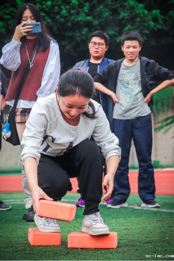 在仅靠三块“简易泡沫砖”行走的接力比赛中,有的同学手舞足蹈,惹人欢笑,乐在其中;有的同学蹑手蹑脚,小心翼翼,走出了“螃蟹步”,十分有趣;有的同学则找到了比赛的技巧,在软绵绵的泡沫砖上如履平地,健步如飞,完成青春接力。各个参赛班级团支部在游戏中竞争,竞争中增加了团结,团结中增加了互相的信任。经过激烈又刺激的竞技后,2020级7班团支部获得了“搬砖过河”单项比赛冠军,2020级4班团支部、2020级11班分别获得了亚、季军。