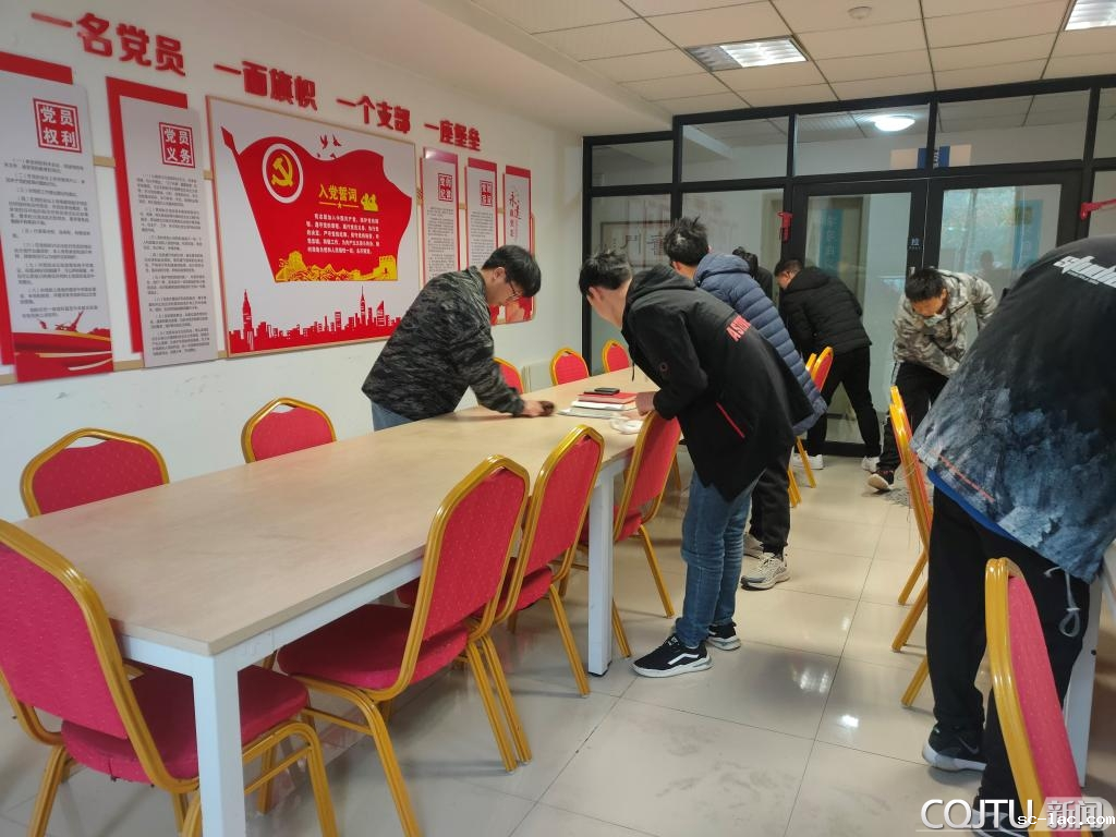 3月5日上午,秉持着为人民群众做好事的理念,机电学院本科生第七党支部的入党积极分子主动打扫楼道卫生,将宿舍二楼阅读休息室中的桌椅板凳擦拭干净。机电学院各班也积极进行义务劳动,清理校园环境。
