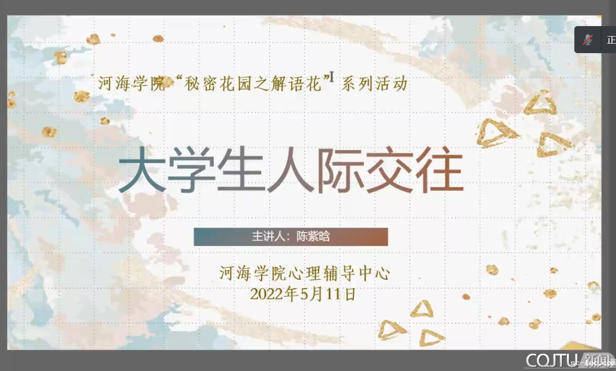 据悉,从2022年3月开始,河海学院心理辅导中心着力打造心理健康教育工作品牌——“秘密花园”,本次讲座属于“秘密花园之解语花”系列活动之一。