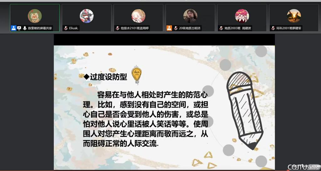 为增强大学生心理健康水平,解决人际交往中的困扰,提升人际交往的能力,形成良好的人际关系氛围,河海学院于5月11日晚举办了以“大学生人际交往”为主题的讲座。本次讲座由河海学院心理辅导中心主办,邀请重庆师范大学心理学专业的实习教师陈紫晗作为主讲人。讲座以线上腾讯会议的方式进行,全院380多名学生参加讲座。