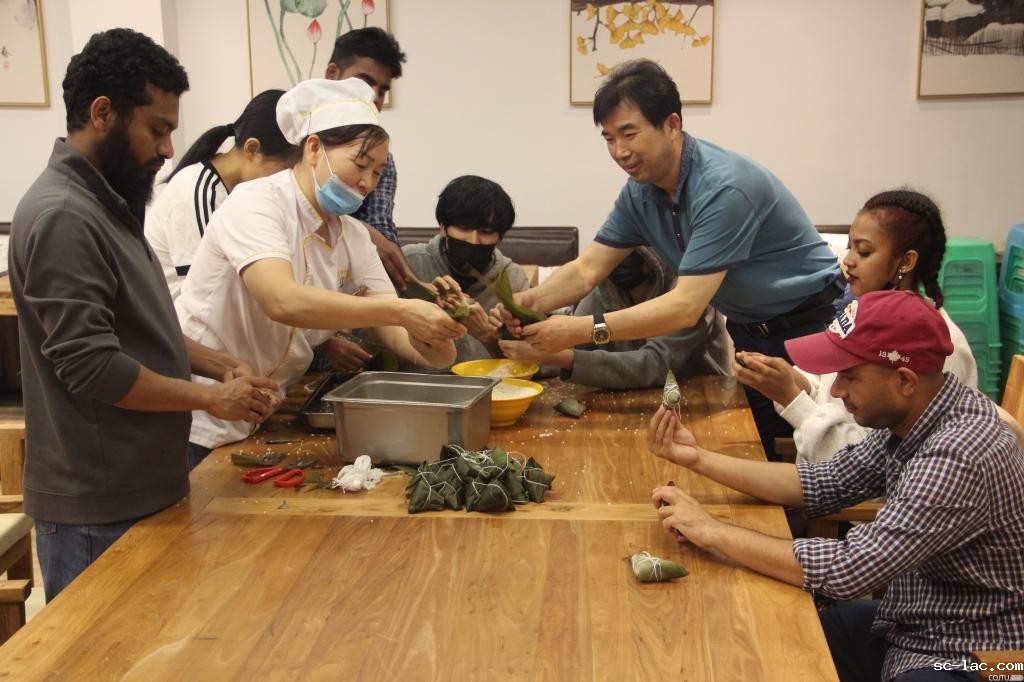欢声笑语中,留学生们一边包粽子,一边跟老师们分享在交大学习生活的所见所闻、所思所想。文化因多样而交流,因交流而互鉴,因互鉴而发展,此次活动不仅丰富了留学生的课余生活,还让他们在浓厚的文化氛围中加深了对中国文化的理解与喜爱。