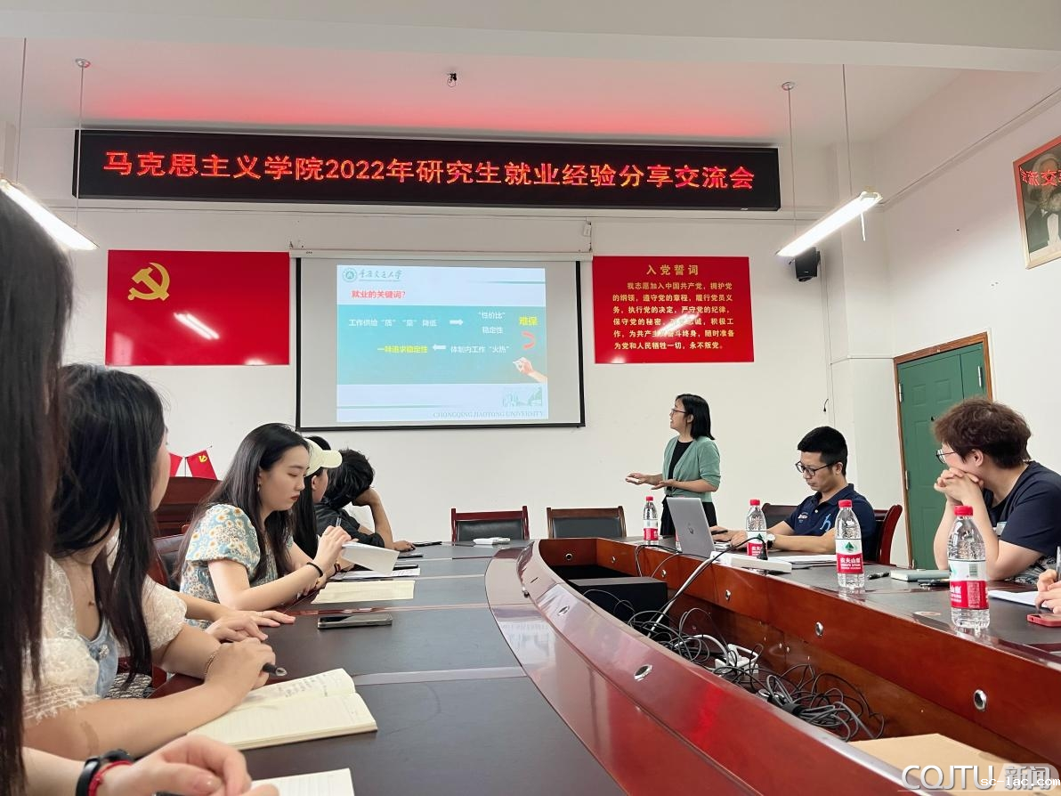 2022年6月9日,马克思主义学院举办就业经验分享交流会,旨在为2023届毕业生提供就业形势、职业定位和就业技巧的相关信息及指导。学院党委副书记黄亚凝、2020级班主任李天兵、学工办主任刘君、校友代表、毕业生代表和全体2023届全体毕业研究生出席了分享交流会。
