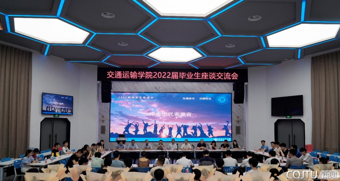 6月21日下午,交通运输学院2022届毕业生座谈交流会在一教大数据中心举行,学院党政领导、各系教师代表、辅导员代表与2022届毕业生代表齐聚一堂,共同为学院发展建言献策。会议由学院党委副书记谭涛主持。