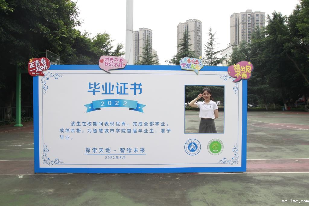 三三两两的智慧学子驻足在一张“毕业证书”前,留下特殊的毕业照。明天,你们即将远行,请用这张特写纪念梦想起飞的地方吧。