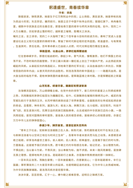 此次比赛广大学子积极报名,踊跃投稿。各位参赛者用朴实的文字深情讴歌了对党的热爱,并结合我校光辉历程和自身经历讲述了在党领导下的奋斗故事,抒发了对党的感恩与敬爱之情,表达了“永远跟党走,奋进新征程”的坚定信心。本次比赛共评定一等奖作品1篇,二等奖作品2篇,三等奖作品3篇、优胜奖作品5篇。参赛学生表示,一定不辜负习近平总书记的殷切希望,不忘初心,牢记使命,努力学习,砥砺奋进,以青春力量在新时代的春风里为民族复兴事业添砖加瓦。