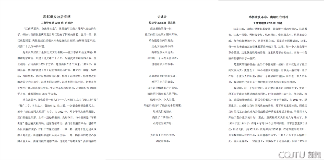 同学们通过参观家乡的革命遗址、革命纪念馆、博物馆等历史遗迹,进行视频拍摄,重温家乡峥嵘岁月,赓续家乡的红色血脉。工商管理类2204班赵杏儿同学以视频的形式为大家介绍了刘伯承纪念馆,让我们隐约看到了元帅“四渡赤水”时的身影,听到了他在“强渡大渡河”时的强音,感受到了他率军“千里跃进大别山”时的英勇无畏。