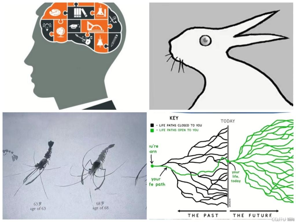 叶四桥以学长的身份分享了在老伟德网上娱乐求学的快乐时光,通过分享“人脑结构图”“兔鸭图”“齐白石虾图”“时光转换”等四幅图片与大家共同探讨了四个主题。一是提升认知,改变思维。人脑是最智慧的器官,里面装满了各种想法,希望同学们在职业探索中不固化思维,去掉“不可能”标签,勇于探索和坚持。二是转变视角,乐观思考。“兔鸭图”从左看是兔子,从右看是鸭子,如果能站在不同的角度思考生活中问题,有些困难可能也是机遇,给予自己积极的心理暗示,自我赋能。三是坚守初心,修成正果。齐白石一生都在画虾,从最初的模仿到多年的细微观察以及长久不断地练习后才画出活灵活现的虾图,热爱和坚持,才能进化和超越。四是珍惜光阴,把握当下。同学们即将毕业、步入人生新的旅程,成功或者失意都已经是过去时,希望同学们不念过往、不负当下、不畏将来,勇毅前行。