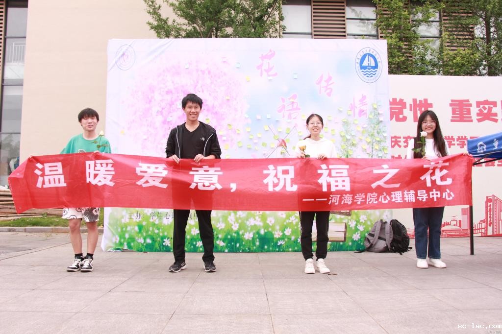 5月25日,河海学院心理辅导中心于科学城校区湖滨广场开展了以“温暖爱意,祝福之花”为主题的5·25送祝福活动。