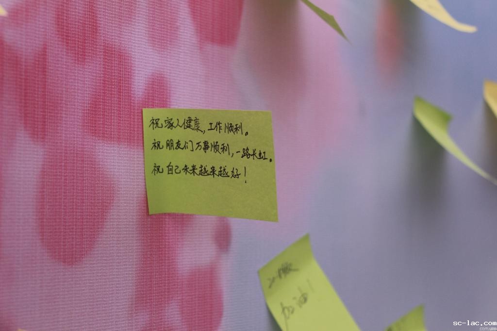 此次活动鼓励大家在便利贴上写下自己的祝福,粘贴在活动展板上。一张张小小的便利贴,承载着对家人朋友们的衷心祝愿,对美好生活的虔诚期待,对自己的无限鼓励。和煦的夏日微风,托起每个真挚的祝愿和希冀,传递到交大的每个角落。