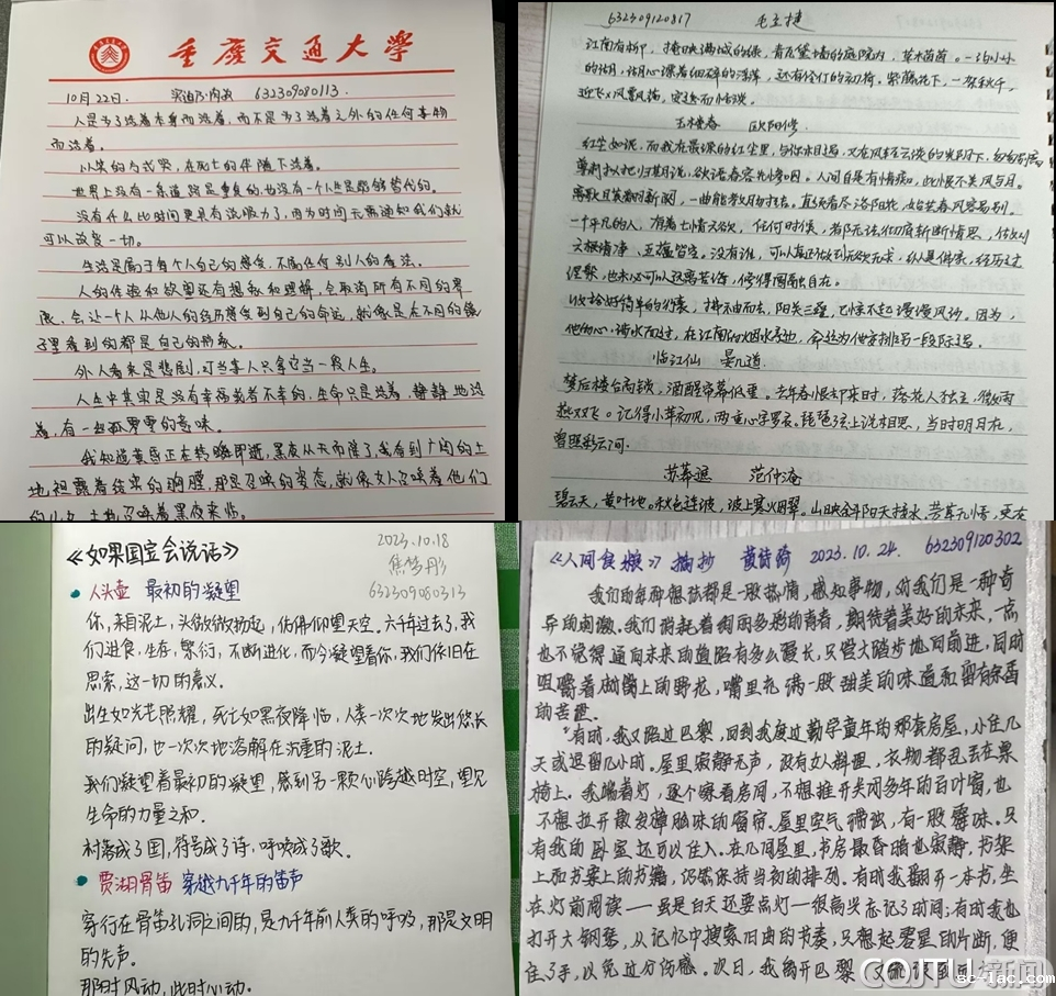 “山风微微,像月光下晃动的海浪,温和而柔软,停留在时光的背后,变成小时候听过的故事”,这是经济学2301班买迪乃·肉孜同学摘抄《云边有个小卖部》的句子,她说“通过阅读这本书她体会到了刘十三少年时怀揣梦想,期待远方的幸福,也感受到刘十三长大后不断被岁月和社会打磨的艰辛。尽管刘十三的命运辛酸,我依旧希望每个人都有这样的勇气,带着初心启航,历经风霜,归来仍是少年的模样”。同样,管理科学与工程2206班的周子琳同学在《我的阿泰勒》的心得中写道“只要我们有一双善于发现的眼睛,永远乐观地面对生活,永远对生活充满热爱,就会发现生活中处处都是美好”。