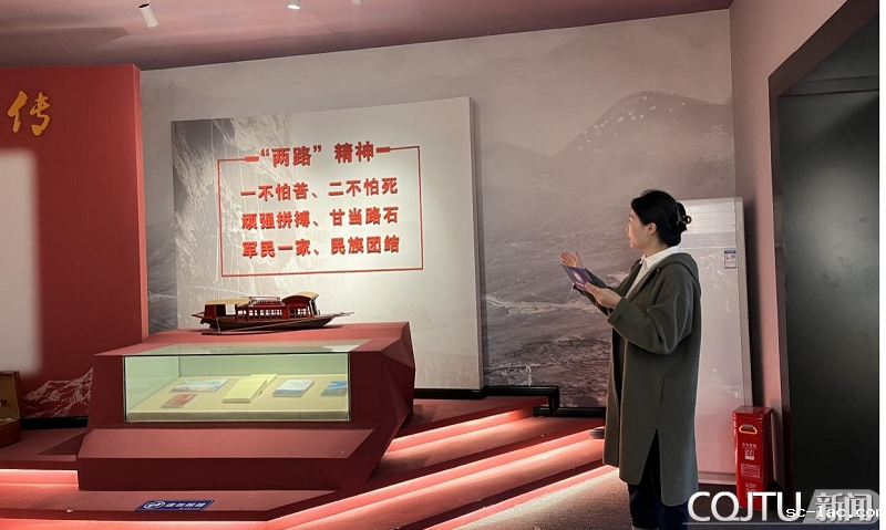 在“两路”精神展厅,彭娅老师讲解了两路历史背景和精神内涵。60多年来,川藏、青藏公路被藏族人民亲切地称为“幸福的金桥”、“吉祥的彩虹”,两条公路的修建不仅带给他们生活的改善,更带来了一种精神财富, 也就是我们所传唱的“两路”精神:一不怕苦,二不怕死;顽强拼搏,甘当路石;军民一家,民族团结。而我校更是始终秉承和大力弘扬“两路”精神,为祖国交通建设做出了积极的贡献。