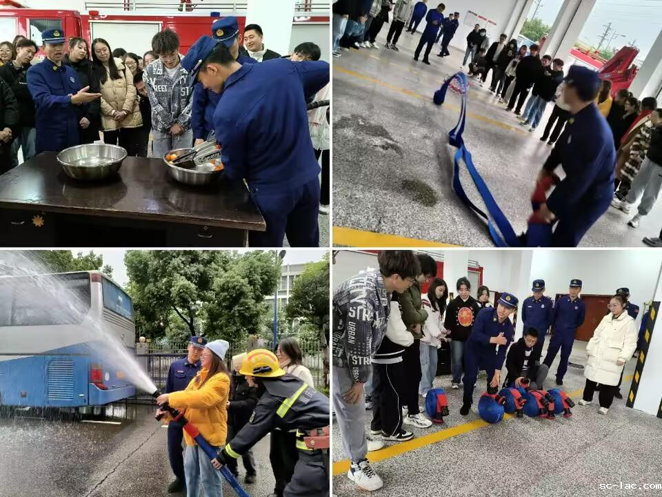 特勤消防员首先讲解了有关火灾现场的应急处理方案、校园内常见初起火灾造成的原因及应对措施、火灾现场逃生注意事项等,并为大家介绍了各类消防救援服、呼吸面罩、切割器、扩张钳等常用救援工具的使用,通过观察、互动等形式让同学们“零距离”体验。随后大家来到训练场地,消防员为大家展示了蒙眼沿水带撤离训练——蒙着眼睛、背着重达30斤的装备在狭小的空间内穿梭。同学们也在消防员的指导和保护下进行了体验,切实体会到了消防员们训练和救援过程中的艰辛。