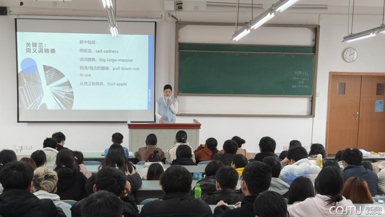 向薪夷同学从写作和翻译等方面向同学们分享自身备考四级的经验。她通过展示历年真题分享了写作、翻译方面的答题技巧,引导同学们通过实战进一步加深对题型的理解。她还特别提醒同学们在考试过程中要做好时间分配,避免因为时间不足而影响整体成绩。
