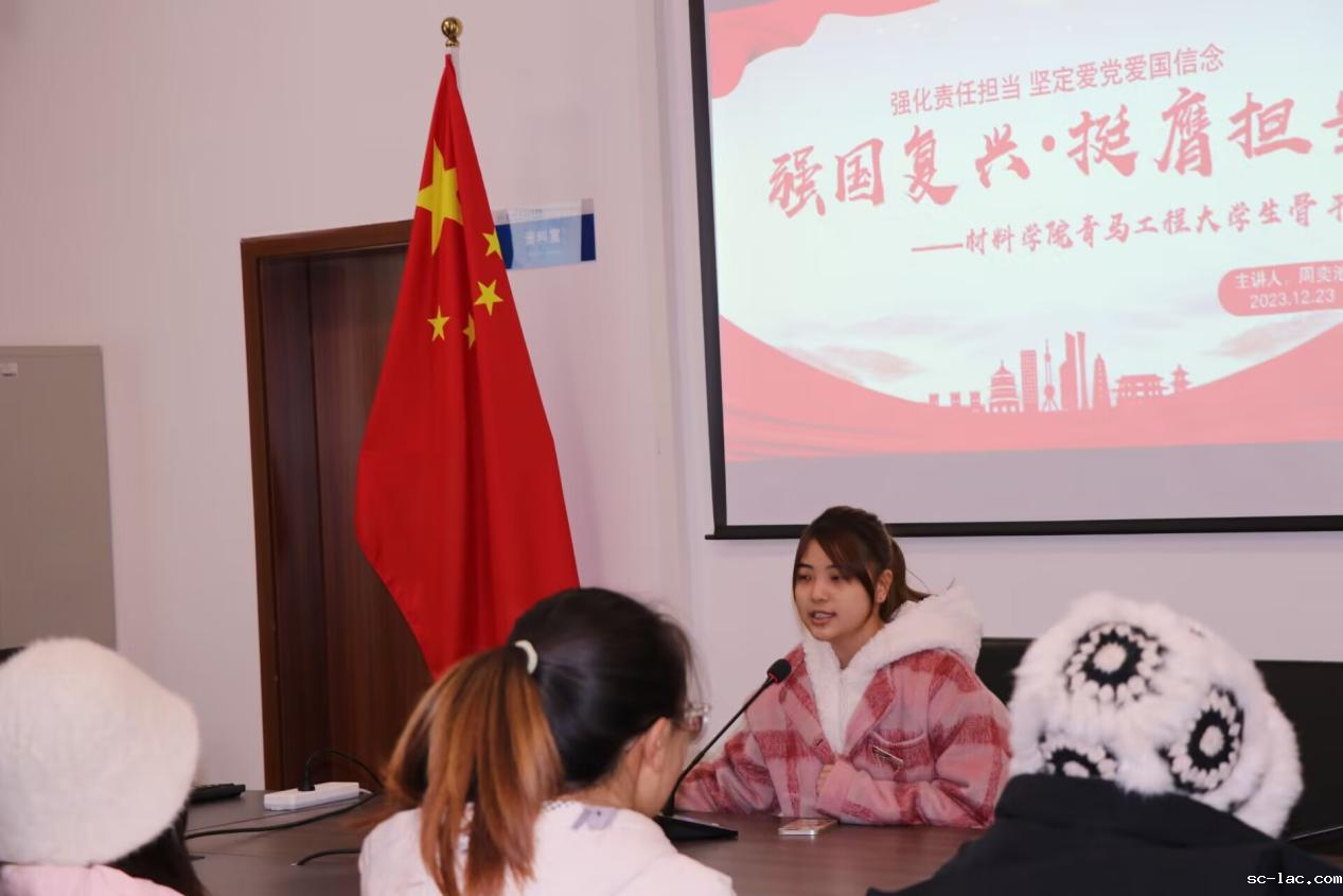 为教育引导青年骨干坚定不移跟党走,团结奋斗向未来,在新时代新征程为全面建设社会主义现代化贡献青春智慧和力量,2023年12月23日,材料科学与工程学院在致远楼会议室为学生会青年骨干召开了以“强国复兴·挺膺担当”为主题的青马工程骨干培训会。本次培训会由材料学院学生会主席团成员王云彬主持,材料学院本科生团总支书记王彪主讲。