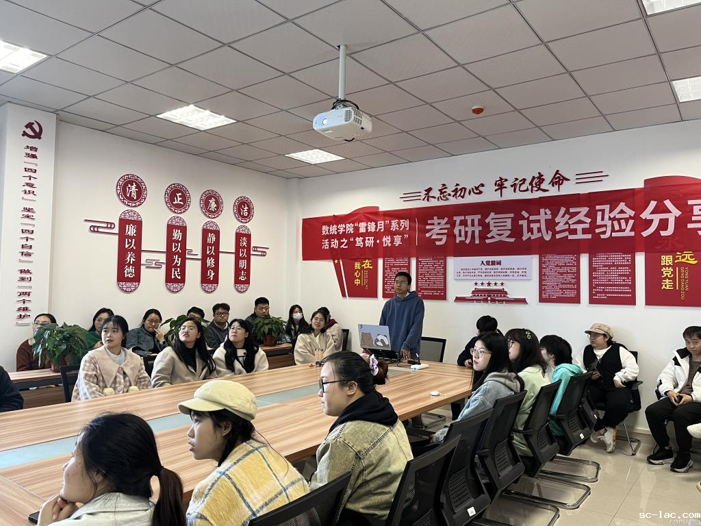 为助力学生考研复试,2024年3月13日,由数统学院团委主办,学院研究生会和研究生党支部承办的“笃研·悦享”考研复试经验分享活动在科学城校区致远楼404成功举办。学院团委副书记兼研究生党支部书记王成和部分2020级本科报考研究生的同学参加了此次分享会。