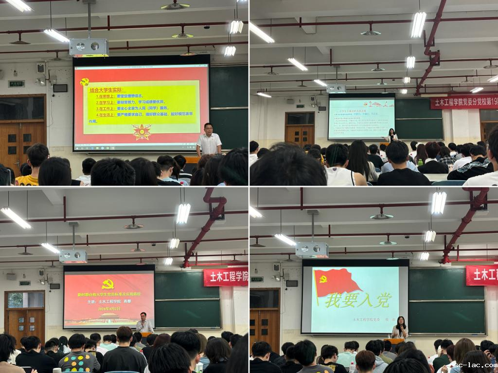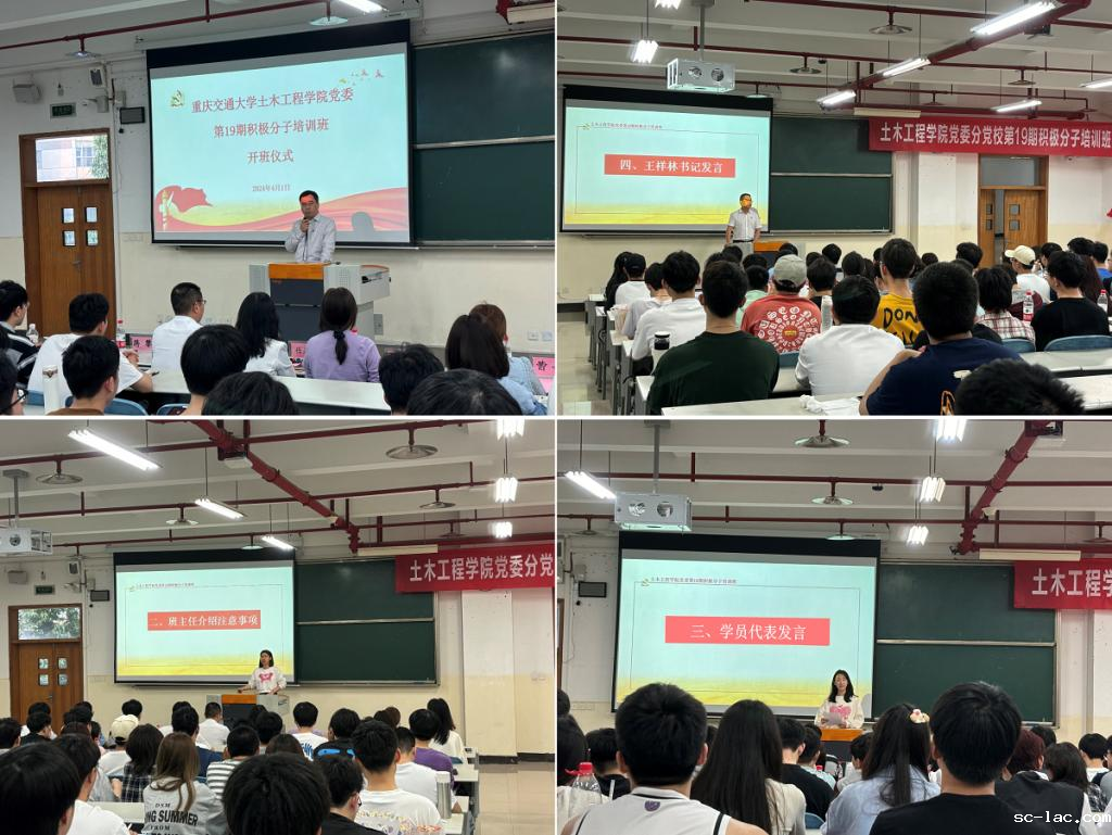 2024年4月1日,土木工程学院党委分党校第19期入党积极分子培训开班仪式在南岸校区三教30301教室进行。土木工程学院党委书记王祥林,正处级组织员、纪委书记任康丽,党委副书记蒋攀,本科生第四党支部书记蔡莉,党务干事夏雪、曹婧以及149名入党积极分子参加开班仪式,开班仪式由党委副书记蒋攀主持。